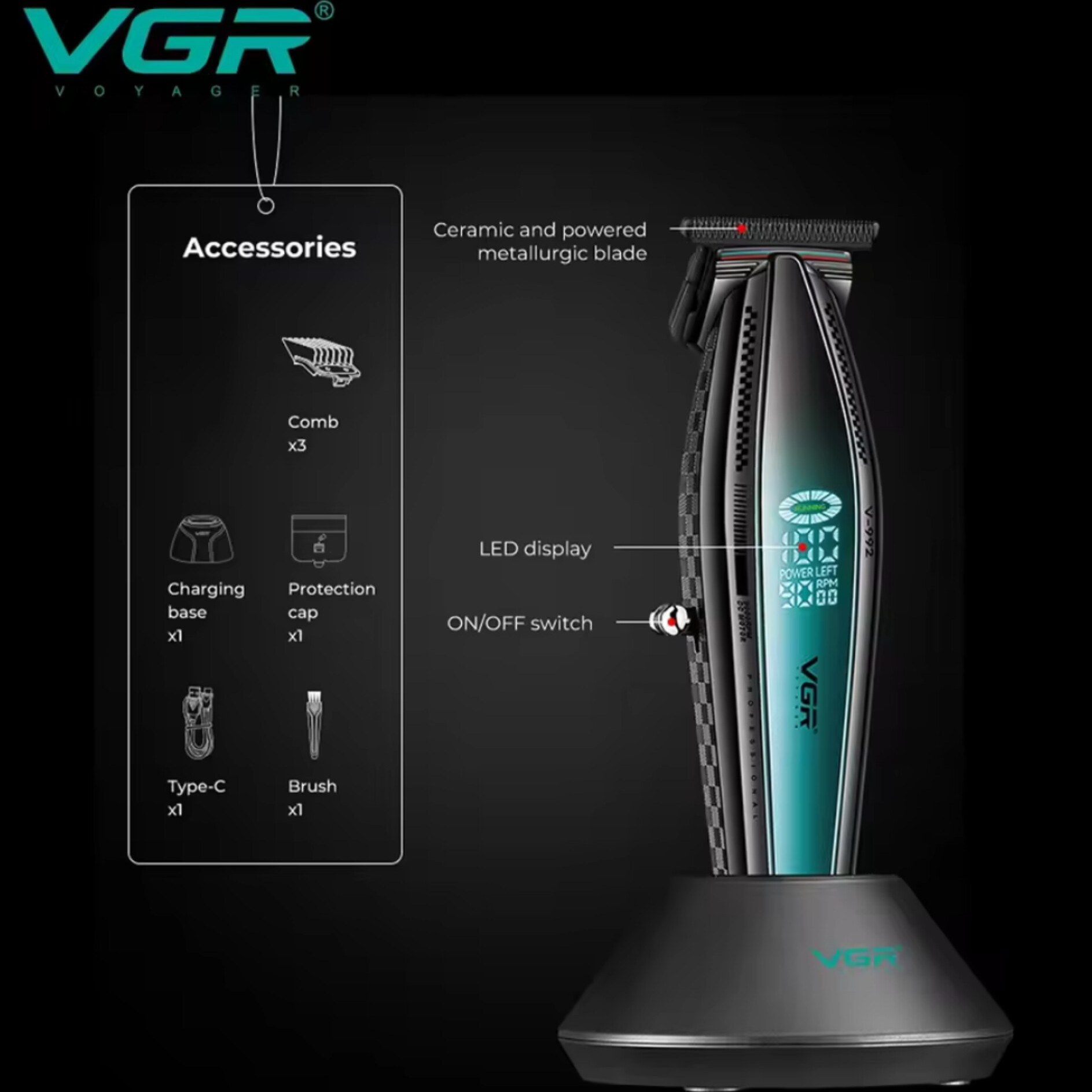 ماشین اصلاح وی جی آر مدل V-992 با تیغه سرامیک و ضد آب